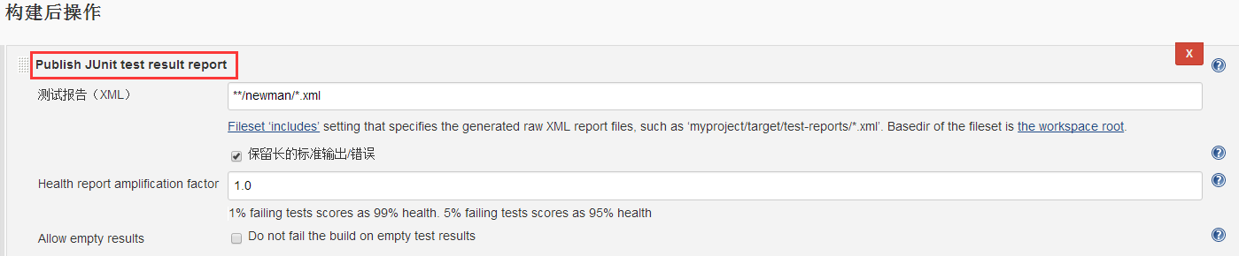 在构建后操作 中选择Publish JUnit test result report