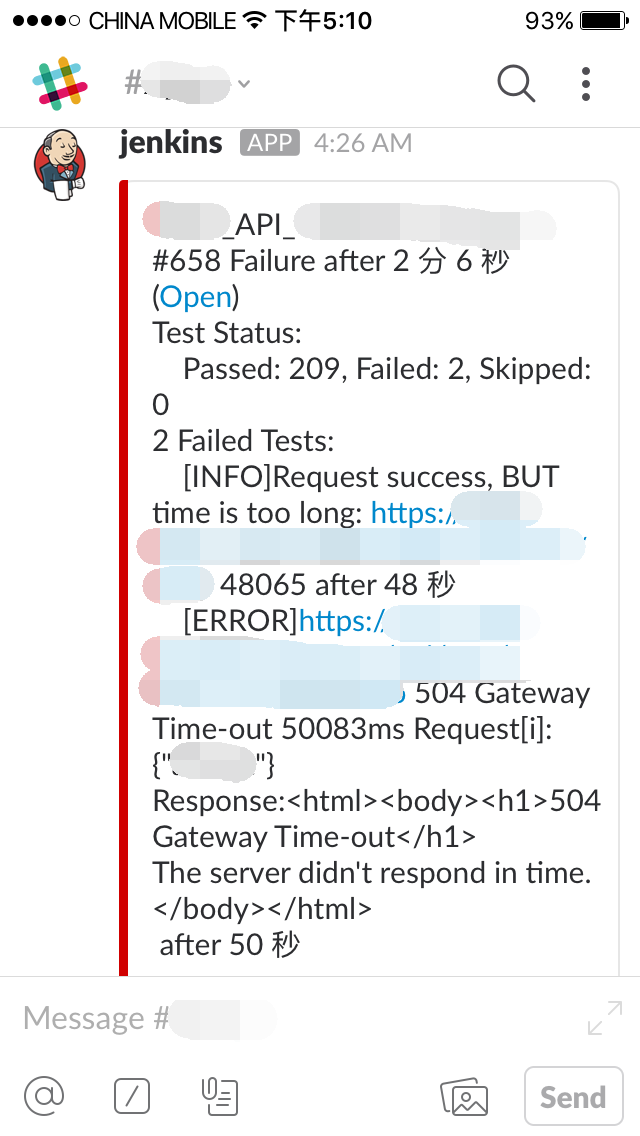 8、测试结果发送到 Slack,移动端查看,效果图如下: