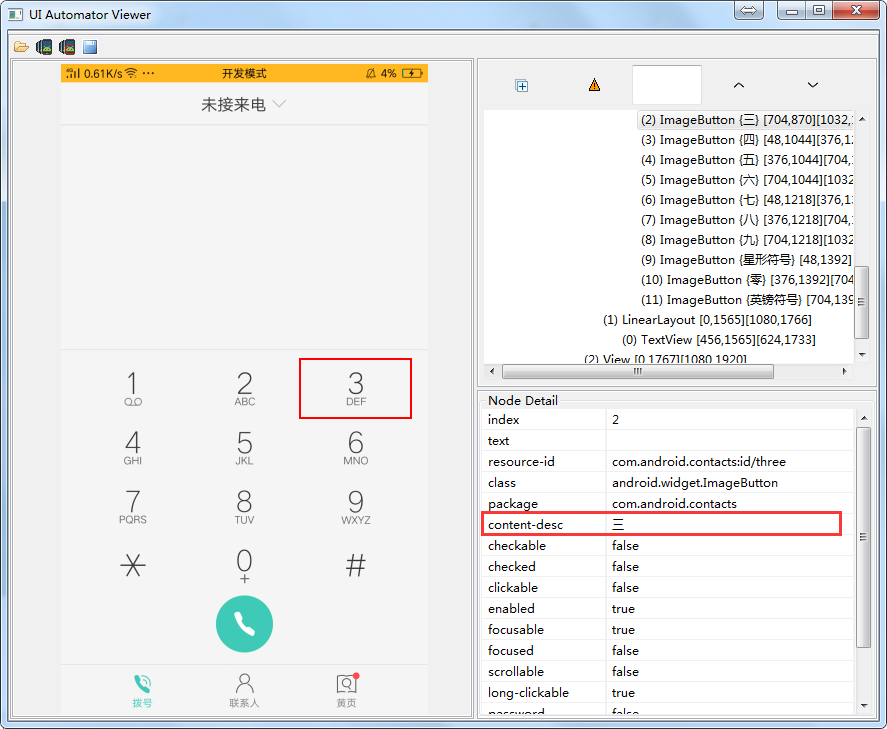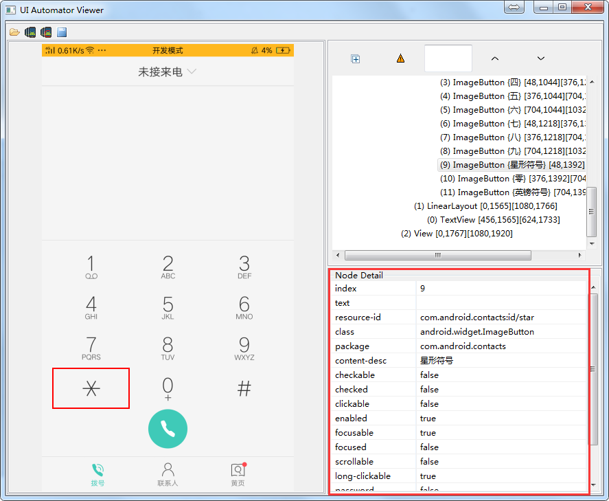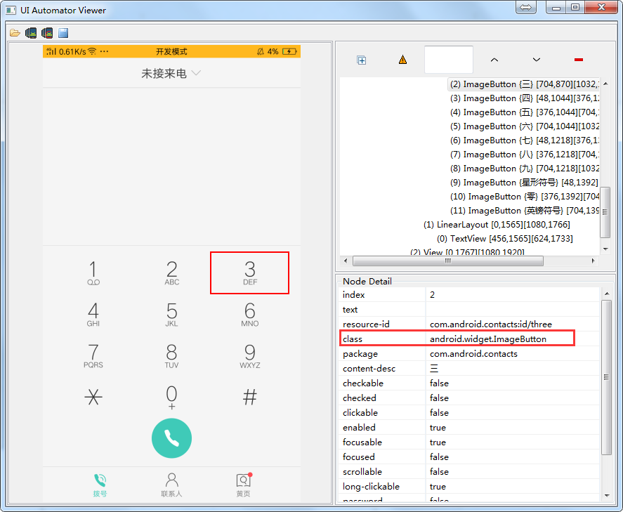 通过 Android SDK 内置工具 uiautomatorviewer.bat 来查看手机应用的控件参数(该工具位于 /tools/bin/ 目录下)