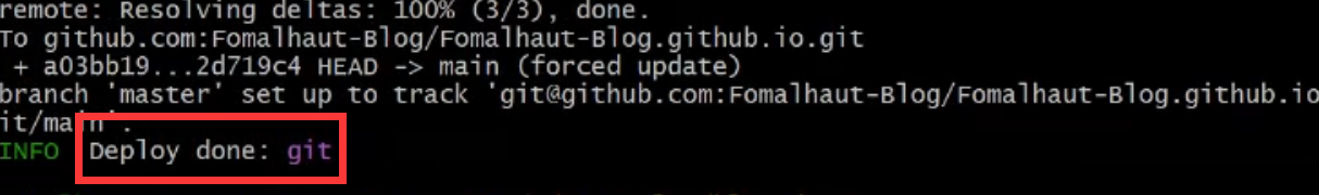 |1 2 3 4|deploy: type: git repository: git@github.com:Fomalhaut-Blog/Fomalhaut-Blog.github.io.git branch: main| -