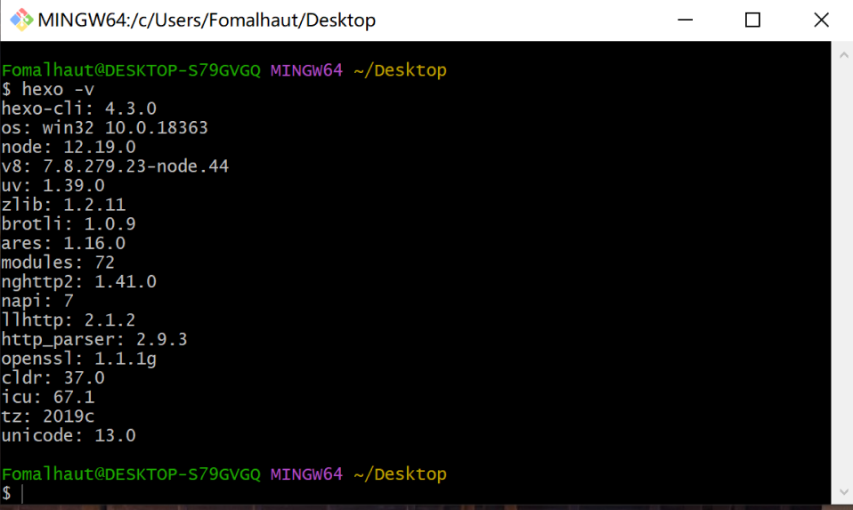 在目标路径(我这里选的路径为【C:/Hexo-Blog】)打开cmd命令窗口,执行