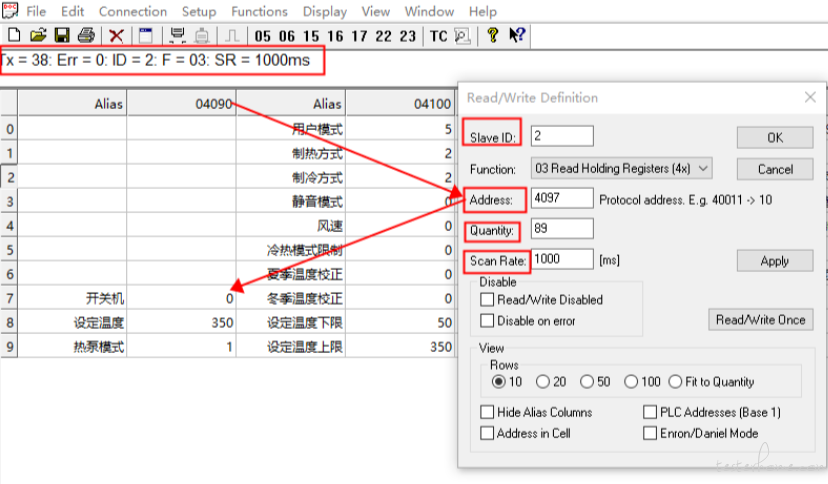 Address:读取设备的初始地址,填写十进制地址,比如初始地址十六进制为 1001,转成十进制为 4097