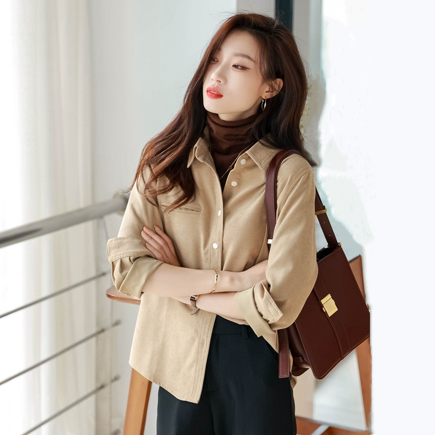 "title": "【古蒂歌品牌】精致磨毛纹理 叠穿衬衣女春装新款 高档磨毛衬衫 ",