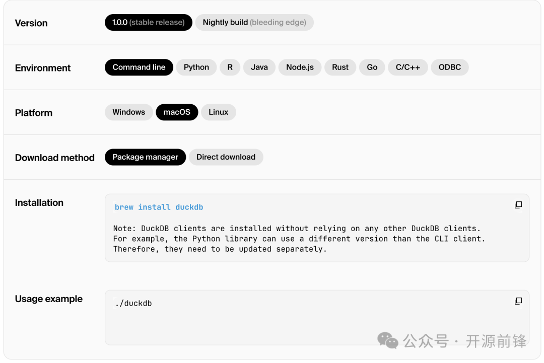 :DuckDB提供了多种编程语言的API,如Python、R、Java等。这使得开发人员可以轻松地将DuckDB集成到他们的应用程序中,实现数据的快速分析和处理。
