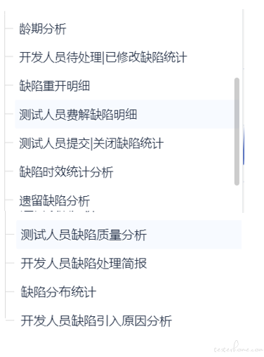 另外还有11 个缺陷相关统计,且都可按版本来统计,可选某个版本或的所有版本,有些还可按人分组及不按人分组。