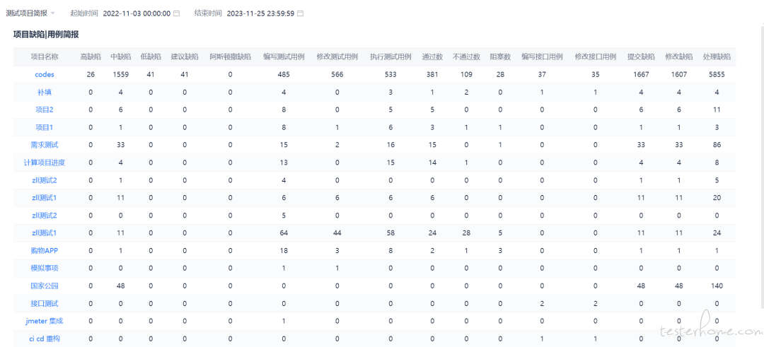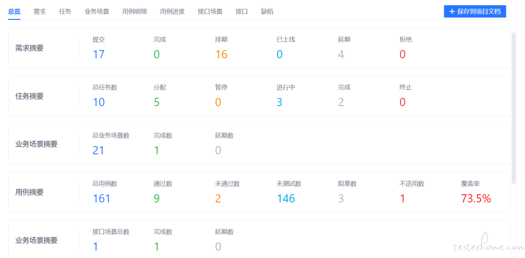 除了质量大屏还有一系列统计,如缺陷时效,用测试总览,等 20 多个统计。