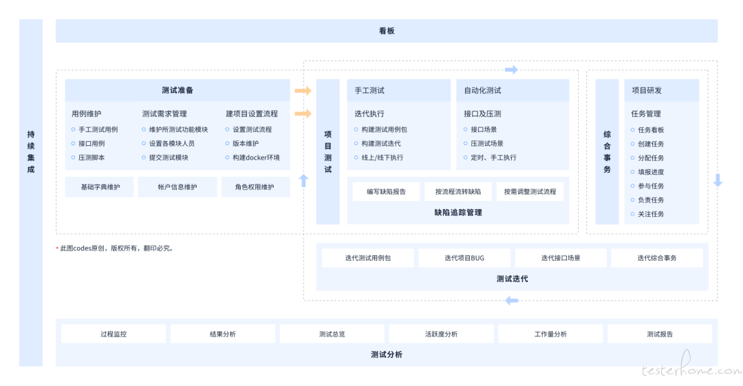 Codes 让迭代、看板、度量和自动化以井然有序,融会贯通的方式融合到测试协同中;同时又能轻松帮助测试测试左右移,让敏捷测试与"润物细无声"的方式落地。