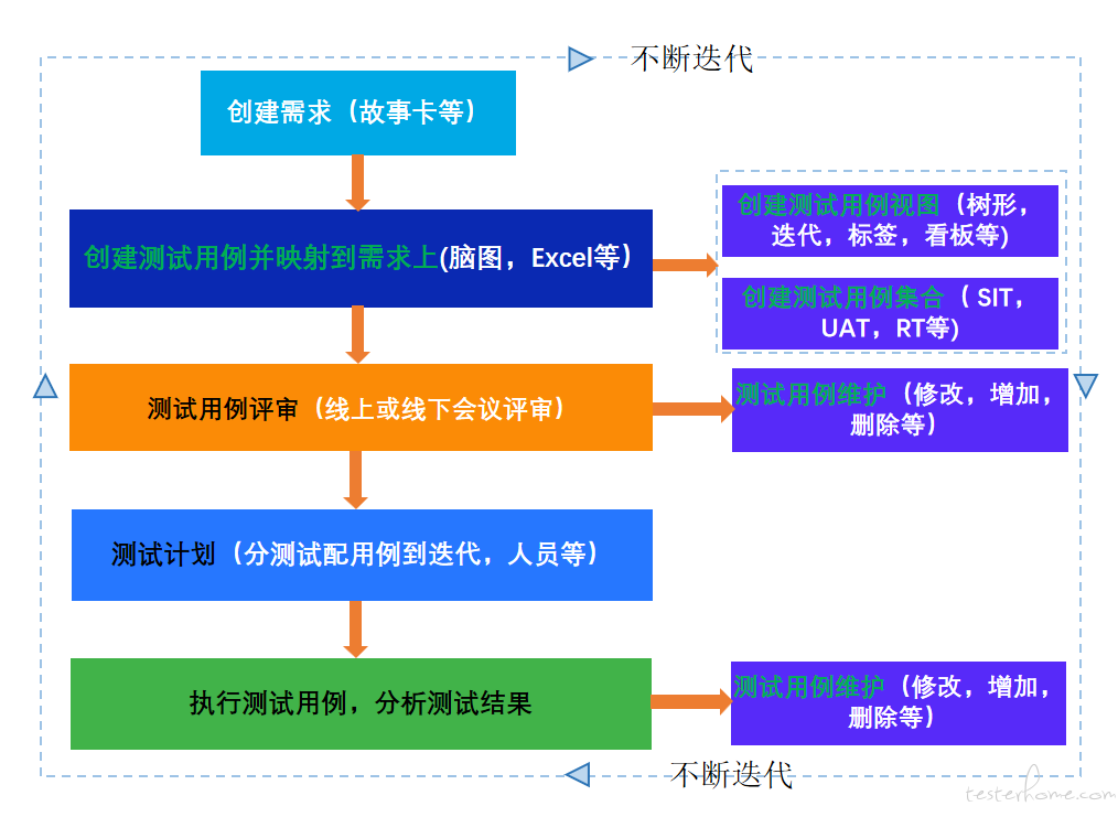 过程都和下图一样,关键在于测试的组织管理形式不同。比如:介入的时机,采用的一些手段不同,整个测试的组织过程是最大的不同。