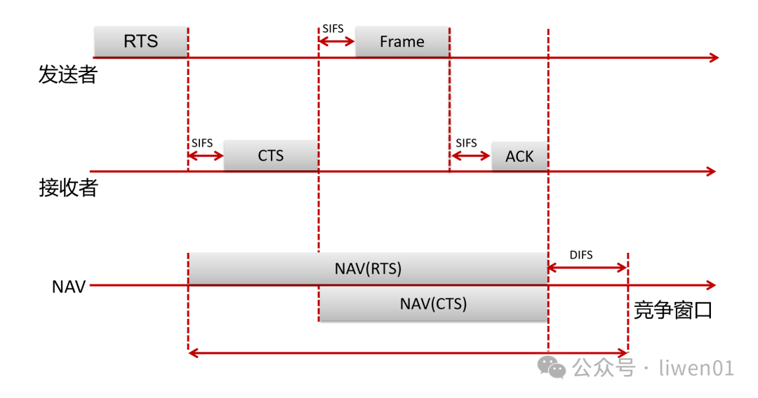通过 RTS/CTS 机制,避免了同时传输引发的冲突。
