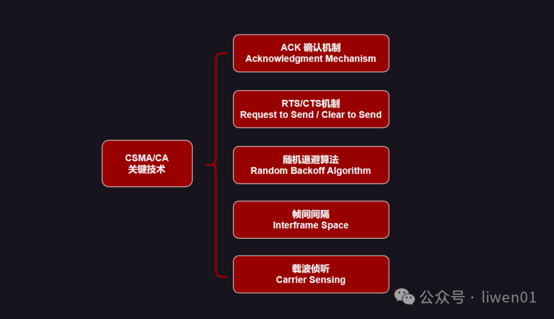 载波侦听:设备在发送数据之前也会监听无线信道,检查是否有其他设备在使用。只有信道空闲,设备才会继续执行发送操作。