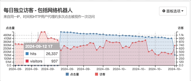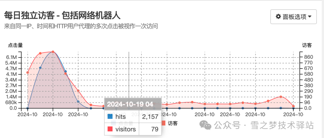 每日独立访客监控到访问异常,具体表现为访客数量基本不变甚至降低的情况下,流量巨增!