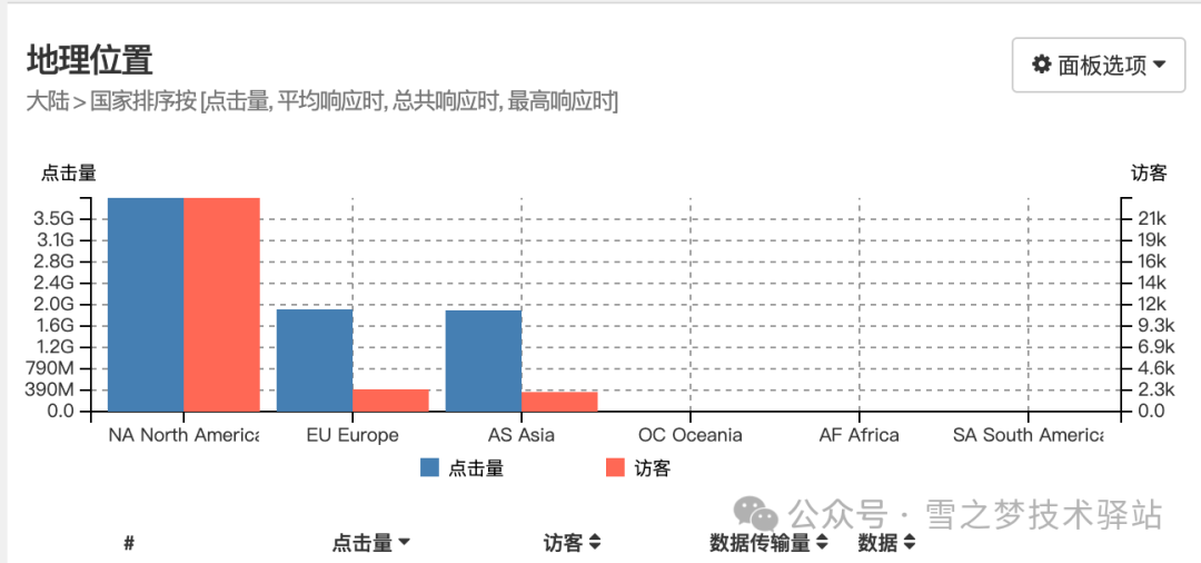 地理位置按照点击量排序,北美和欧洲的点击量惊人,都是爬虫的杰作.