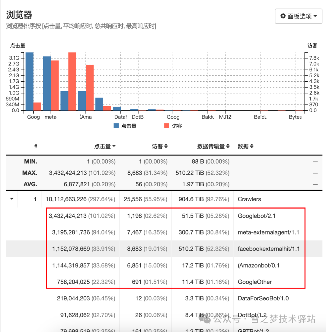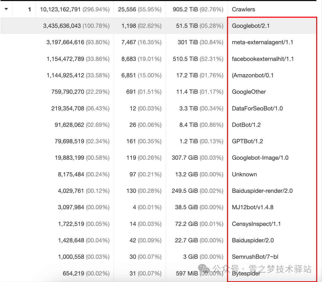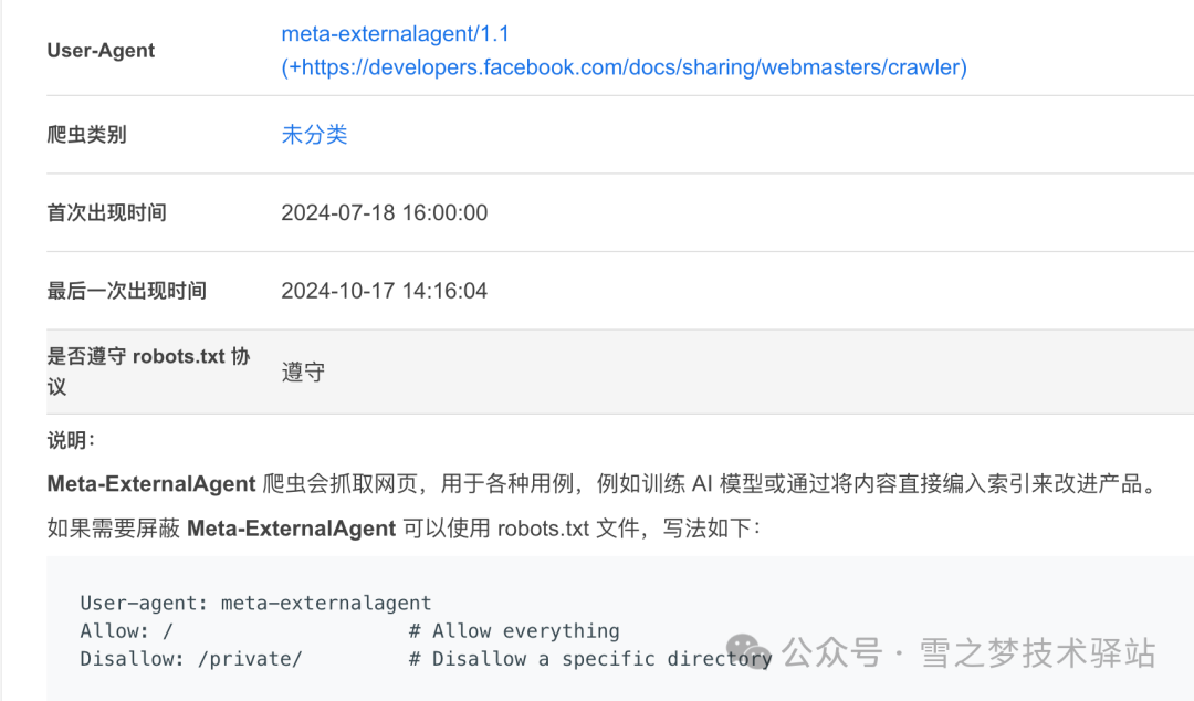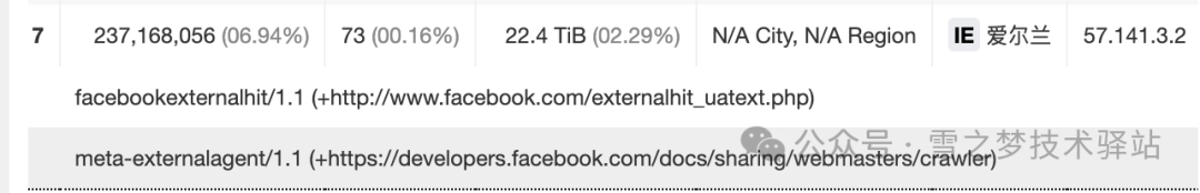 根据下图爬虫,筛选出用户代理从而加入到黑名单列表,例如拉黑: meta-externalagent/1.1