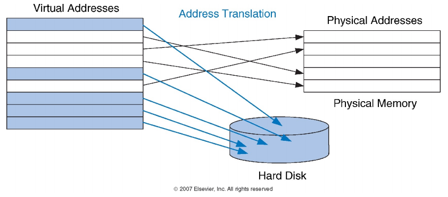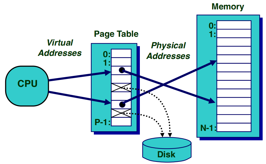 - 通常由系统软件通过虚拟内存子系统进行管理
