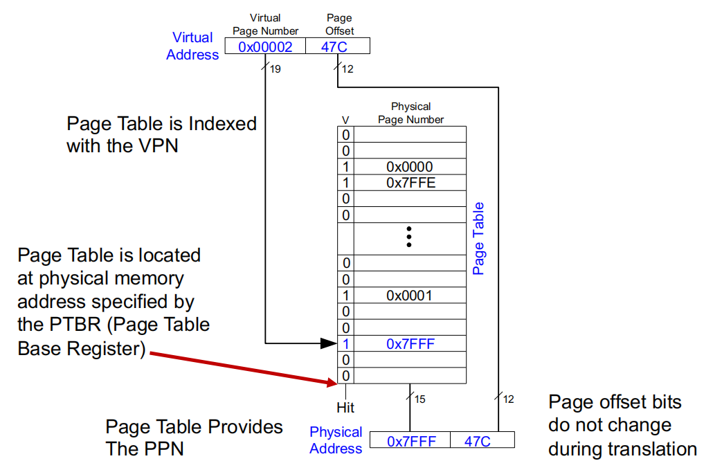 - 需要一个有效位(valid bit)来指示在物理内存中的有效性/存在性(图中对应"Present/Absent"位)