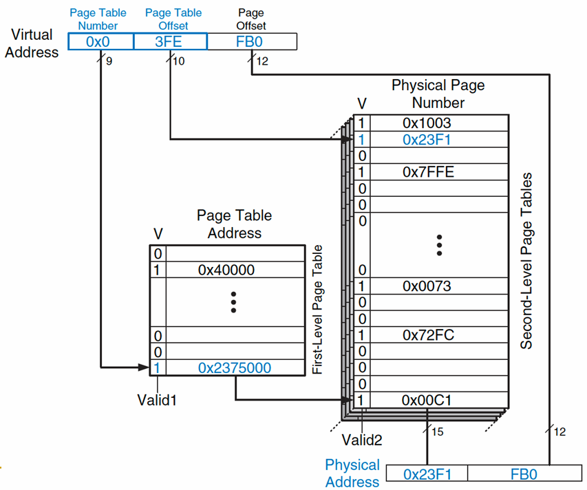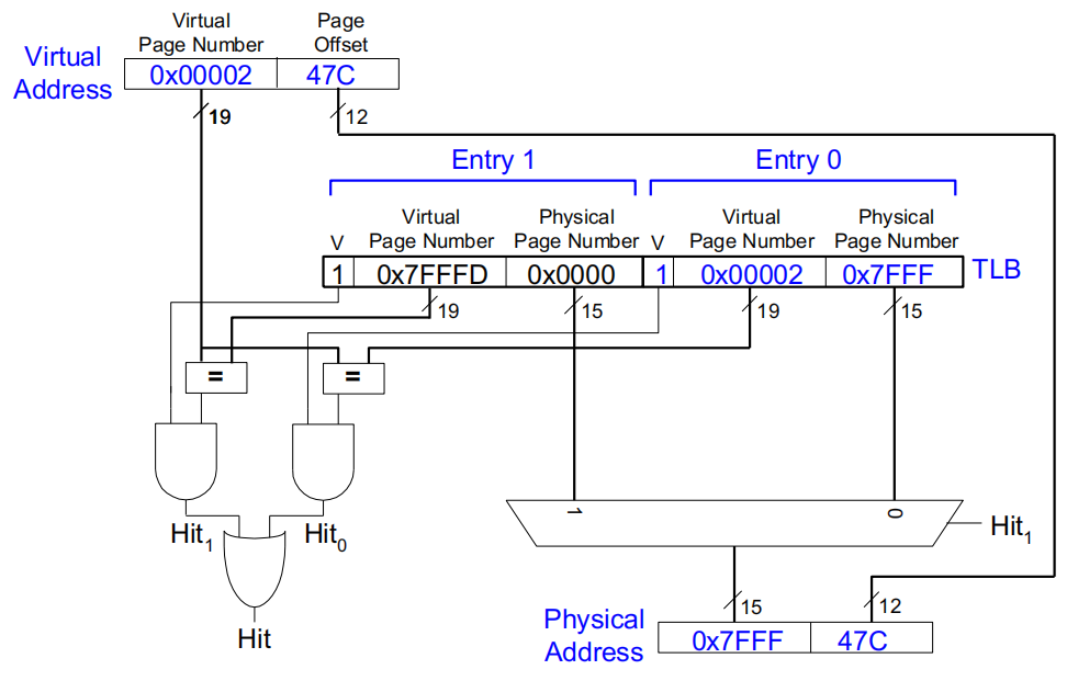 - 可以缓存在称为转译后备缓冲区(TLB)的特殊硬件结构中