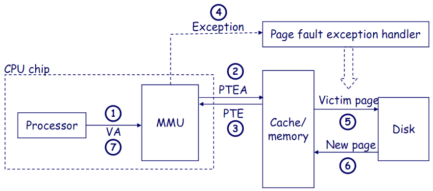 - 操作系统的异常处理程序会被调用,将数据从磁盘移动到内存中。