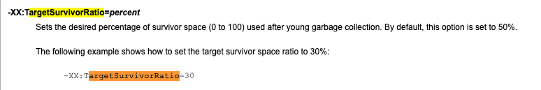 来设置,参见 issue1199 ),取这个年龄和 MaxTenuringThreshold 中更小的一个值,作为新的晋升年龄阈值"。jdk8 官方文档引用:https://docs.oracle.com/javase/8/docs/technotes/tools/unix/java.html。