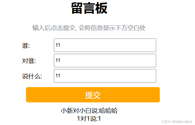 <p class="grey">输入后点击提交, 会将信息显示下方空白处</p>