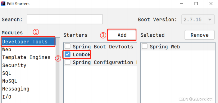可以看到此时就存在lombok这一项,点击后就会自动添加引入对应的依赖;