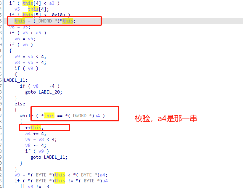 之前跟踪到是在sub_D01620(v2, v16, v17, v18);但是没发现发现在哪(据说是v2),但在sub_D020C0跟踪到了是v5(ecx)
