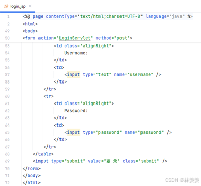 在web目录下创建一个名称为login的JSP文件,在该文件中添加用于用户登录时输入用户信息的表单元素: