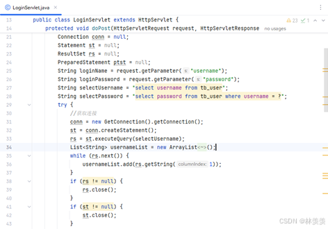 掌握了JDBC的核心接口和类后,我能够更加高效地编写数据库操作代码。也更加巩固了课堂知识:Driver接口是JDBC驱动程序的接口,每个JDBC驱动程序都必须实现该接口。尽管我们一般不会直接使用Driver接口,但了解其存在对于理解JDBC架构很重要。而DriverManager类管理一组JDBC驱动程序的基本服务。它用于建立与数据库的连接,通常通过调用DriverManager.getConnection()方法实现。Statement接口用于执行静态SQL语句并返回它所生成结果的对象。通过调用createStatement()方法从Connection对象获取。PreparedStatement接口是Statement的子接口,代表预编译的SQL语句。它主要用于执行带有参数的SQL语句,以提高安全性和性能。ResultSet接口表示数据库结果集的数据表,通过它可以前向遍历查询结果。特别是在实现用户登录功能时,深刻理解了PreparedStatement的重要性,它不仅提高了代码的安全性,还简化了SQL语句的编写过程。
