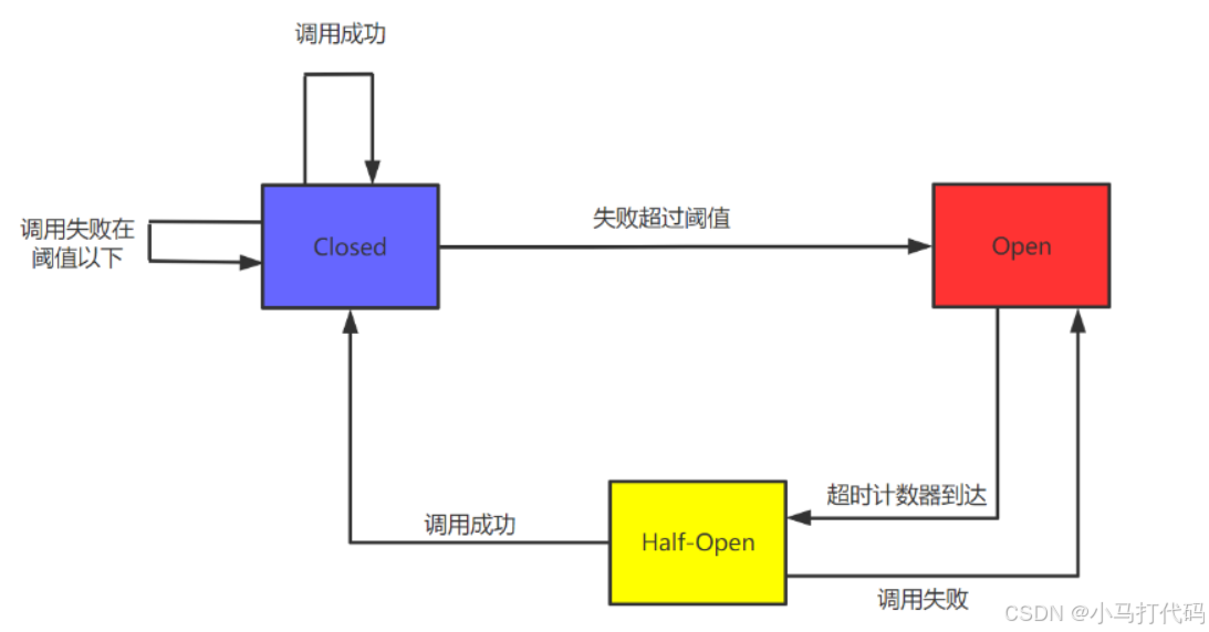失败处理:熔断期间,所有请求快速失败,全都走fallback逻辑