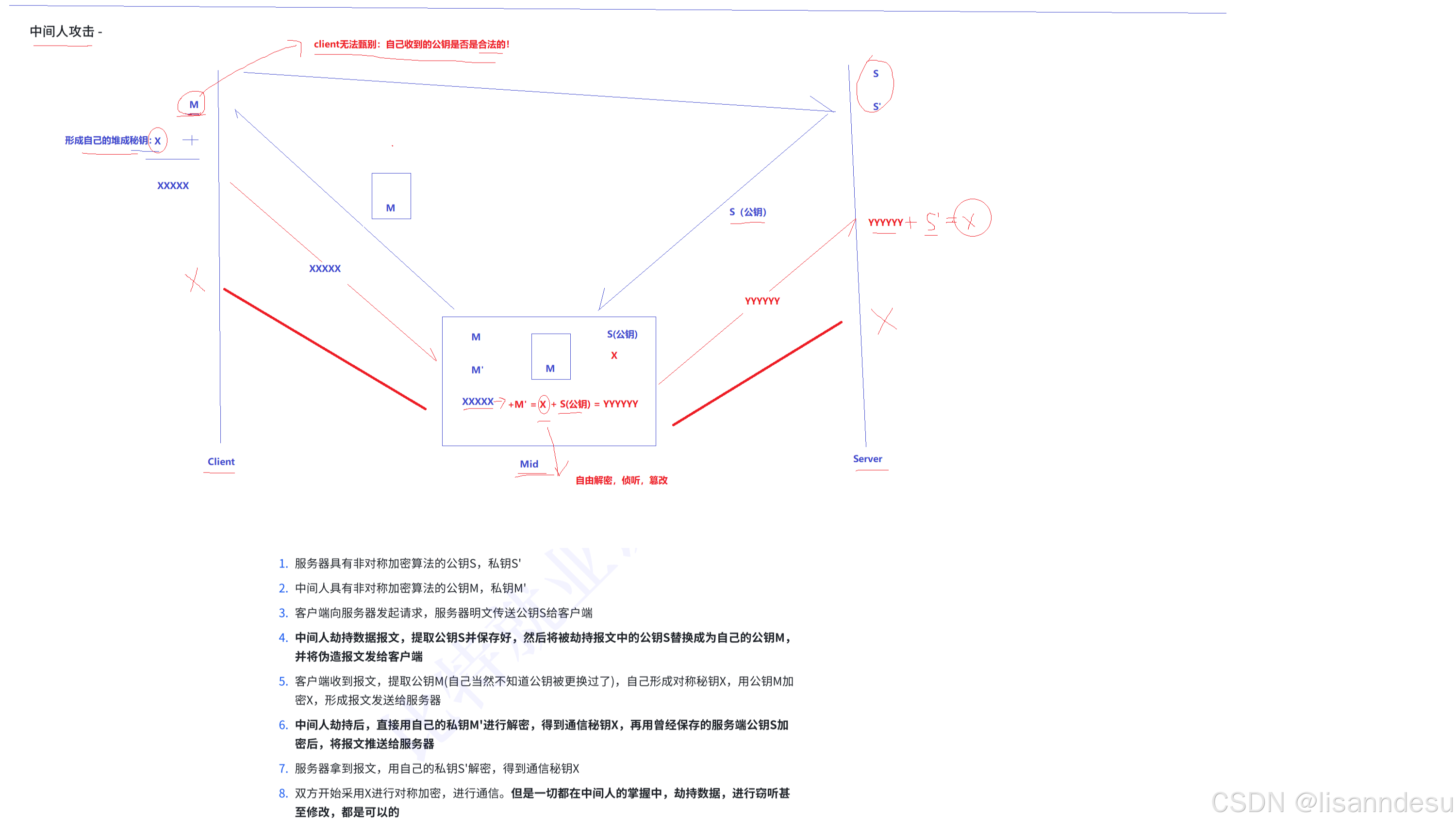 之所以使用单词"貌似安全",是指实际上也不安全。2/3/4加密方案的相同漏洞( 上述"貌似正确"部分的安全漏洞**)**,可见下"中间人攻击"