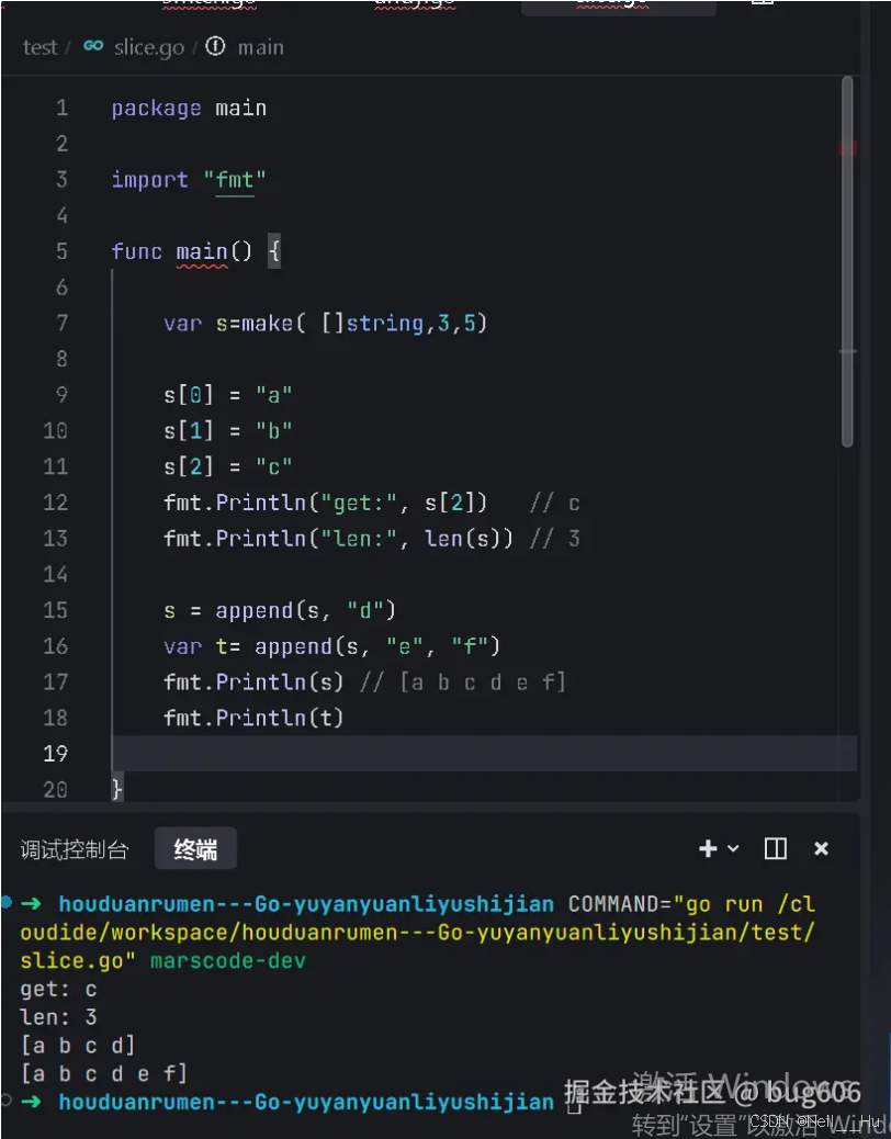 需要特别注意的是:go语言追加的格式必须是slice = append(slice, 4),