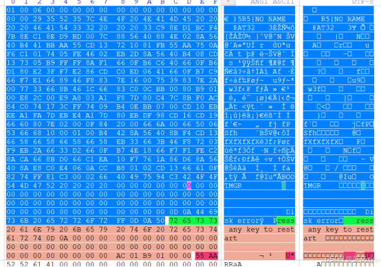 扇区最后的两个字节"55AA"是MBR的结束标志