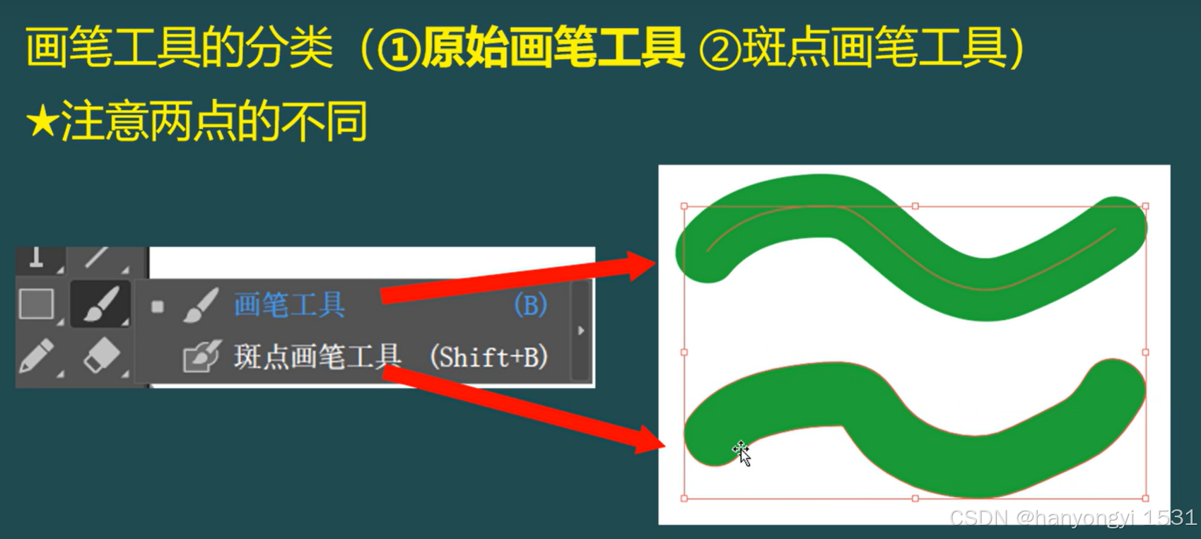 左边是一般选择工具,右边是可以拖动锚点的选择工具