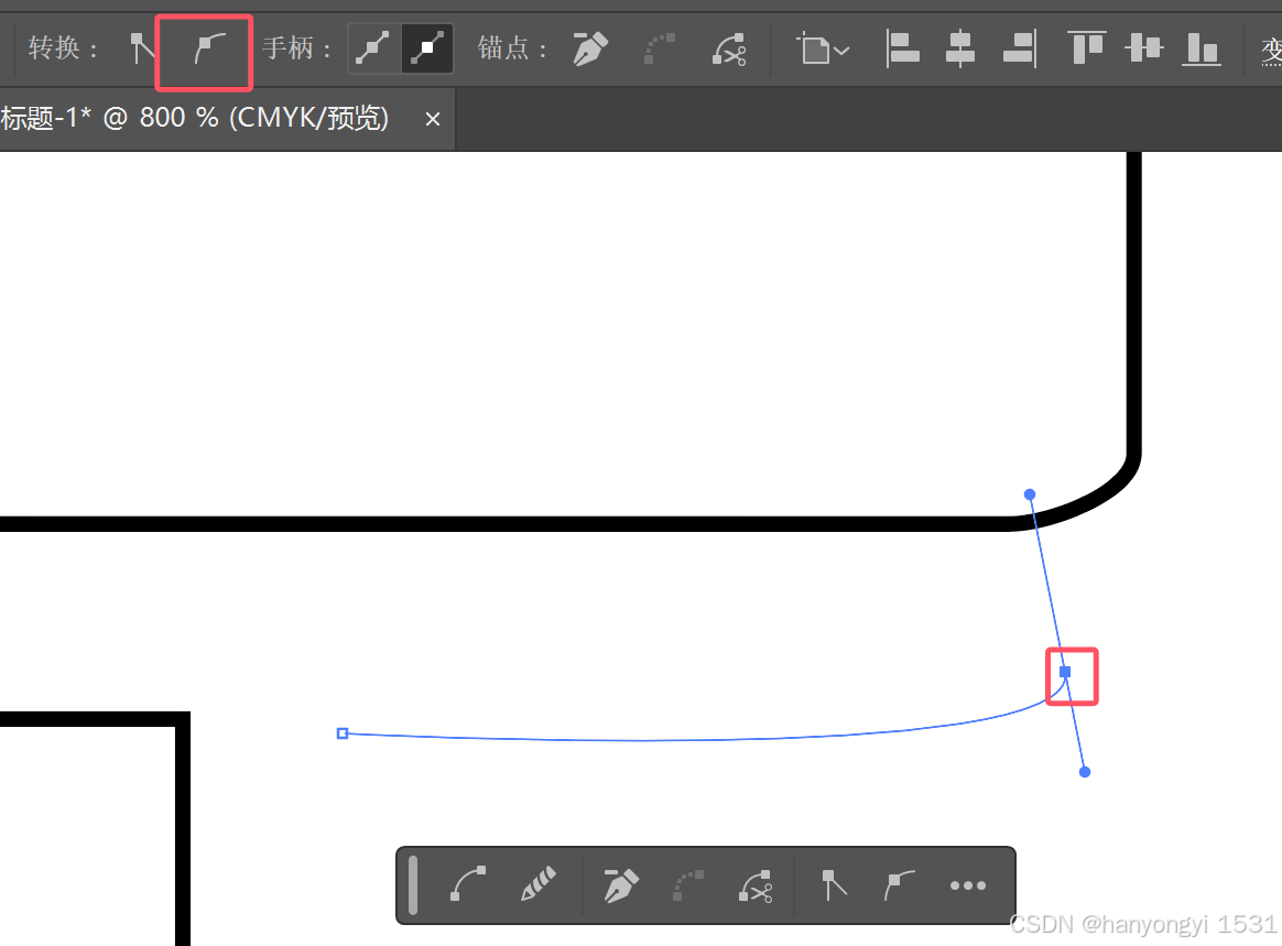 点击锚点,点击转换工具,就能把尖角锚点转化为平滑锚点