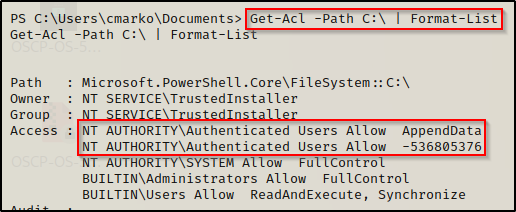 Get-Acl -Path C:\ | Format-List