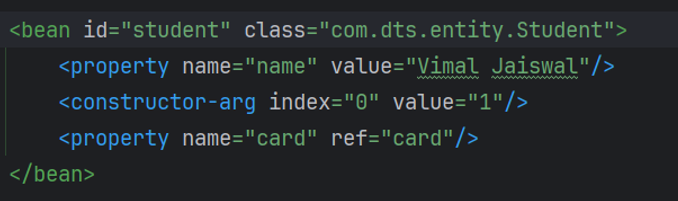 <constructor-arg index="0" value="张三的学生卡"/>
