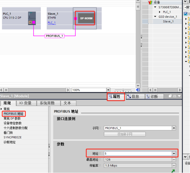 3、点击进入网关属性在profibus地址设置网关拨码地址: