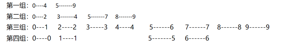 分组逻辑:左右区间相加除以2,将一组分成两组,直到最后,每组只有一个数据分组结束。