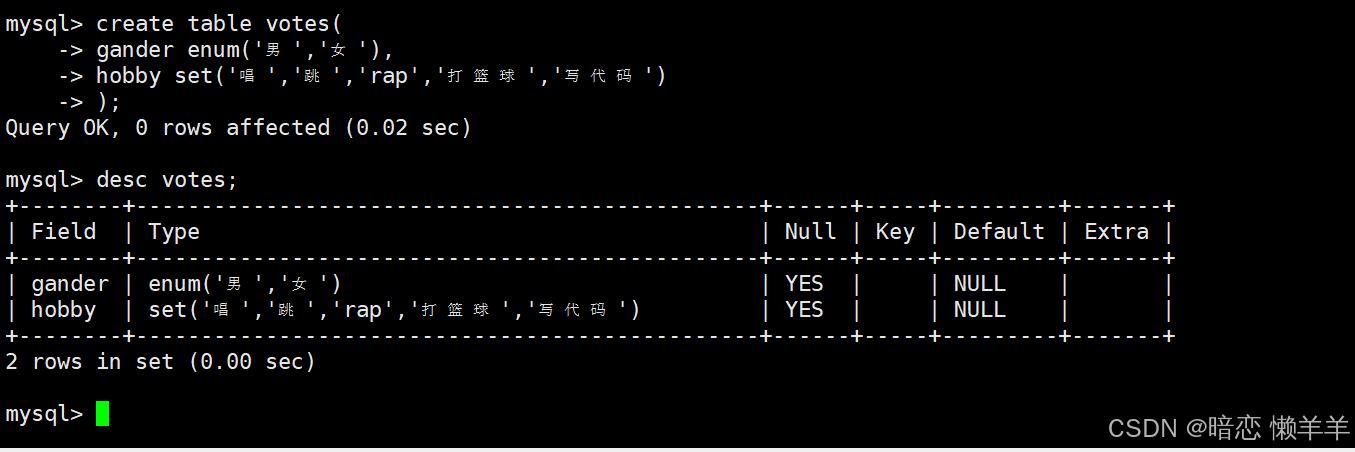 [5.3 enum 和 set 的查询](#5.3 enum 和 set 的查询)