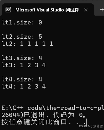 cout << "lt1.size: " << lt1.size() << endl << endl;