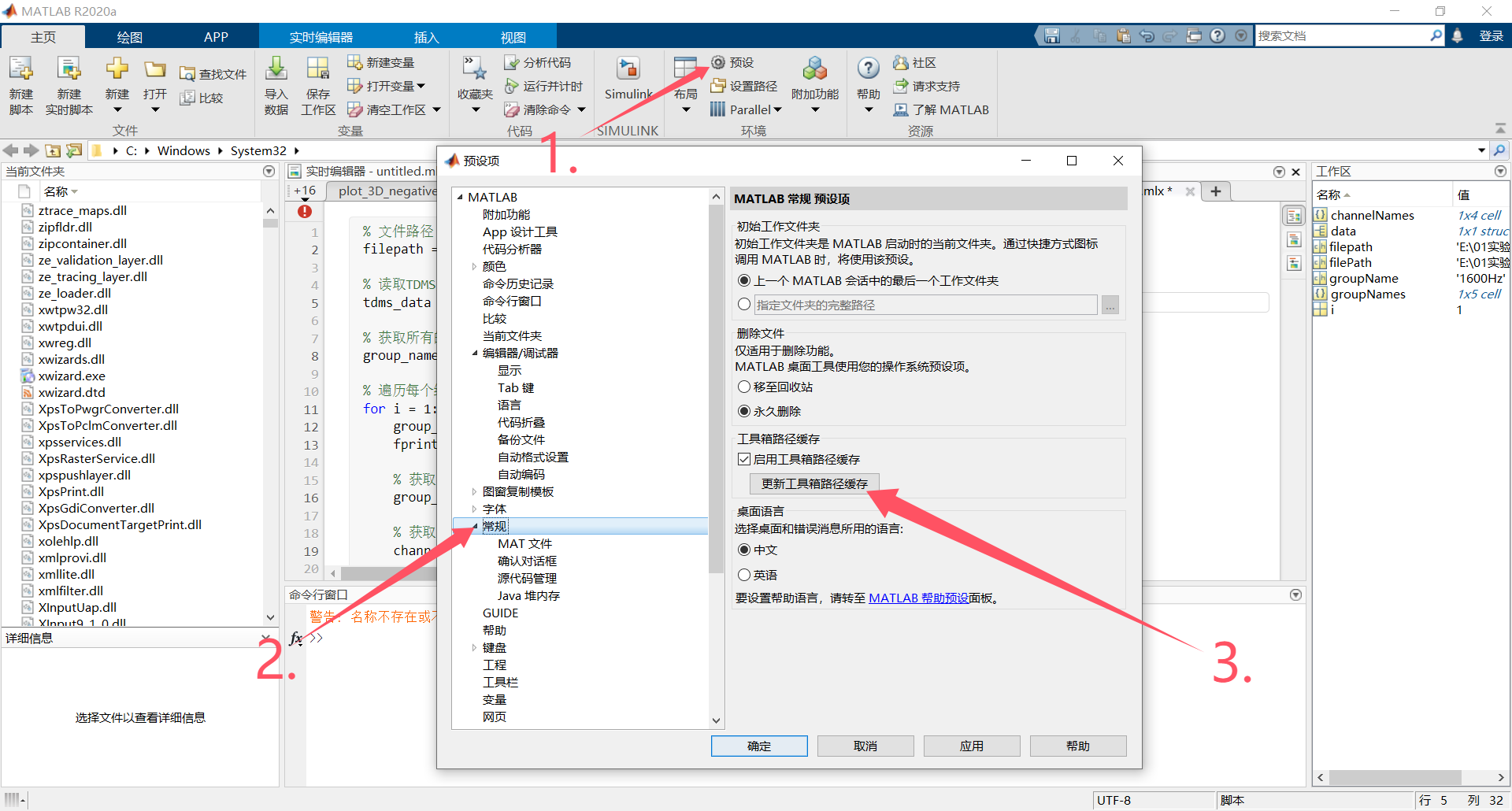 问题描述:Labview采集数据时保存的数据格式一般是tdms文件,matlab无法直接读取tdms文件,需要安装TDMS Reader插件。