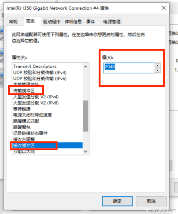 9. 修改接收缓冲区和传输缓冲区 修改成2048 防止相机链接成功会自动掉线