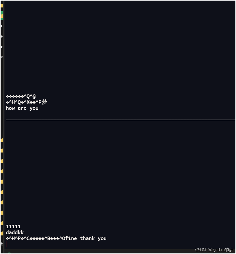 talk usernameA@hostname - 然后双方就可以开始聊天了,屏幕会分成上下两部分