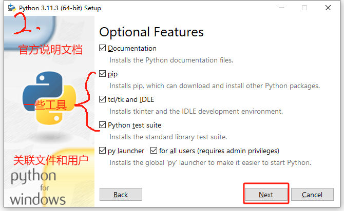 双击打开安装包,选择 Customize installation 自定义安装、勾选 Add python.exe to PATH。
