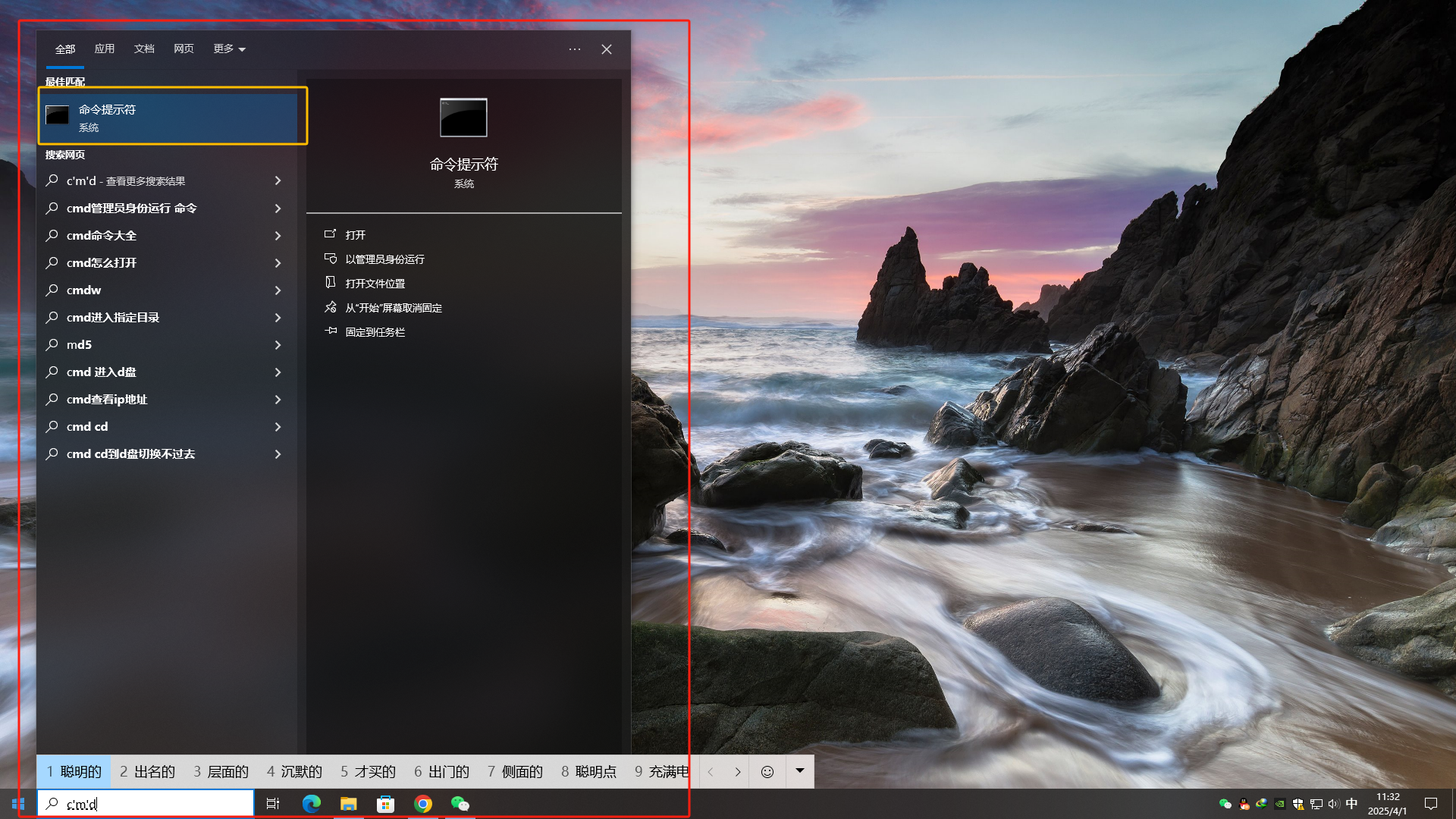 点击左下角菜单,输入 CMD,打开 CMD 命令行,输入 python 然后按下回车键,显示下面代码则说明安装成功,此外还可以让 python 计算算数结果。