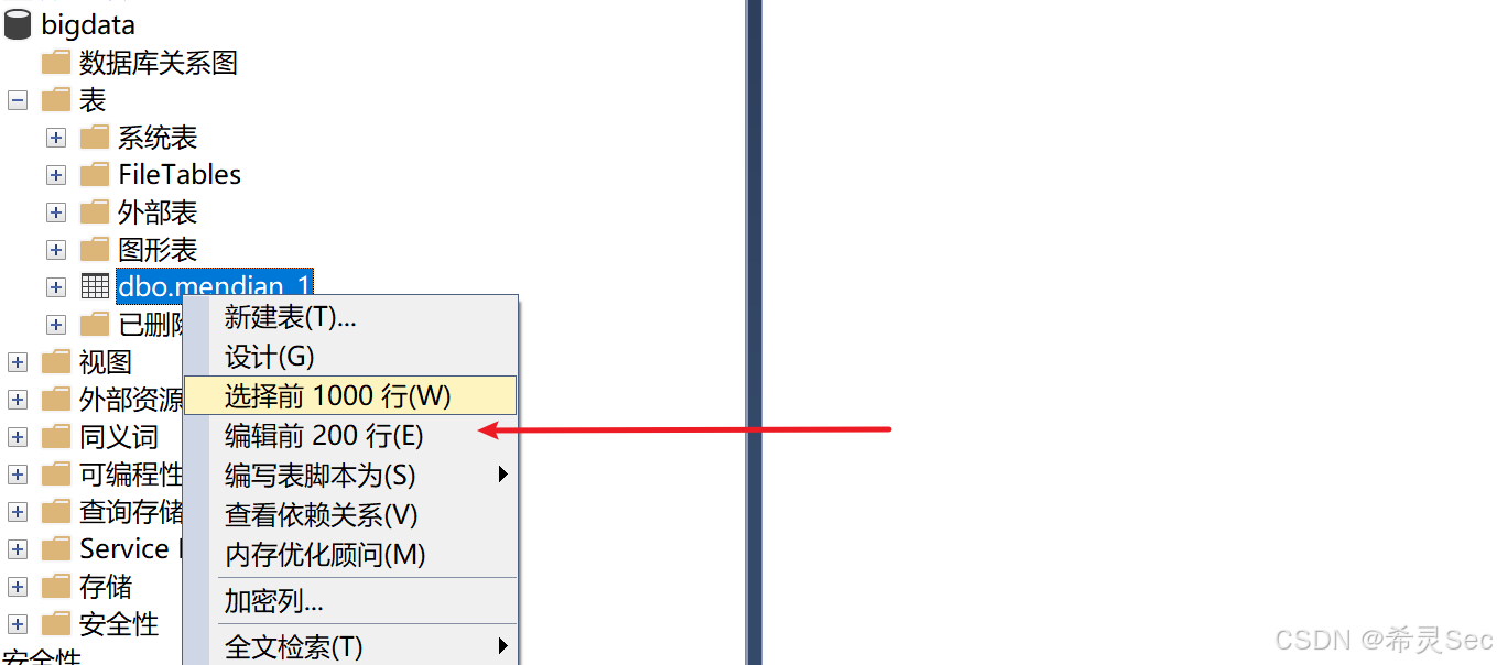 右键,编辑前200行
