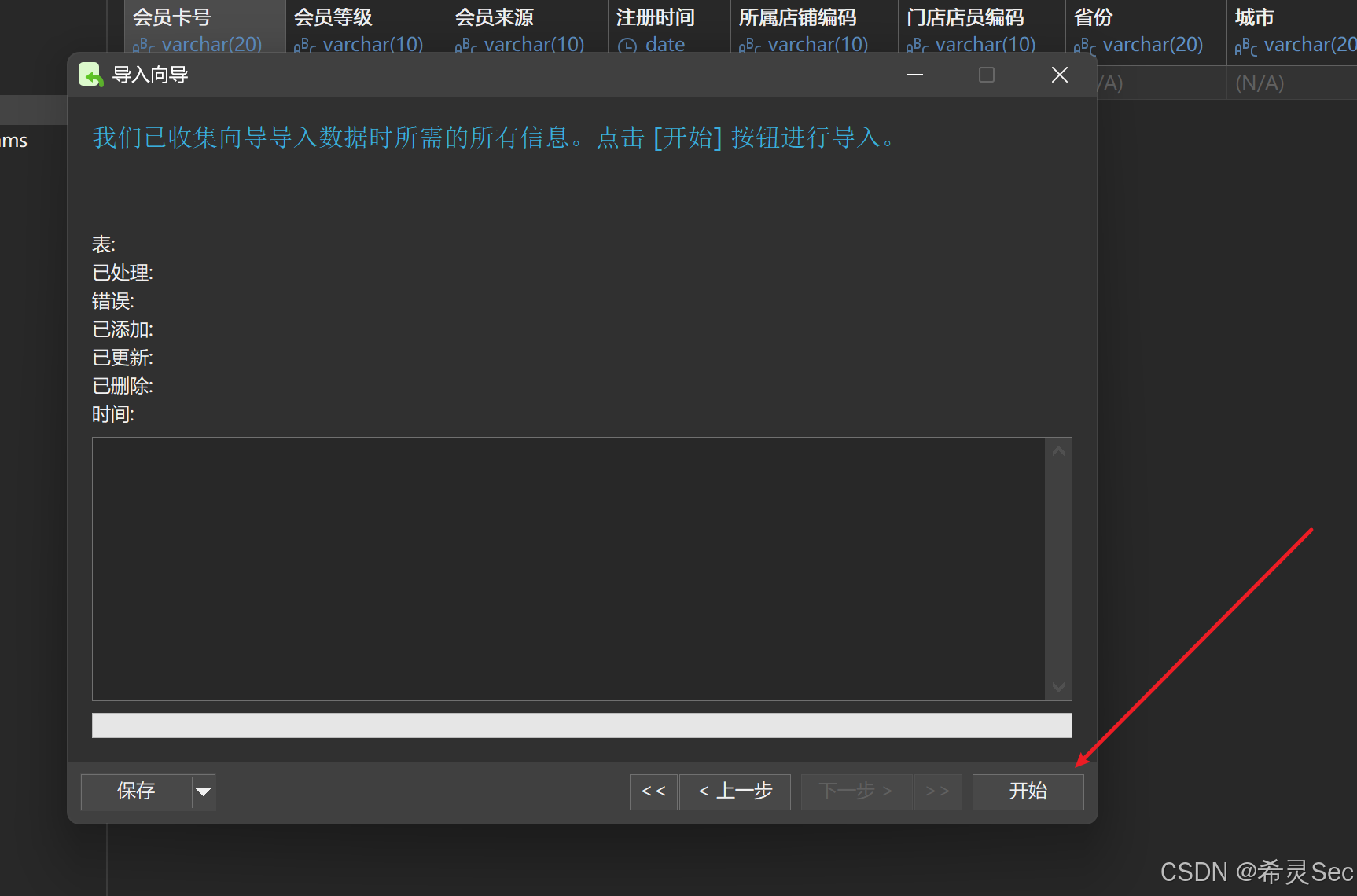 查看到创建的表内容都是空的,删除原表,现在开始导入xlsx数据。