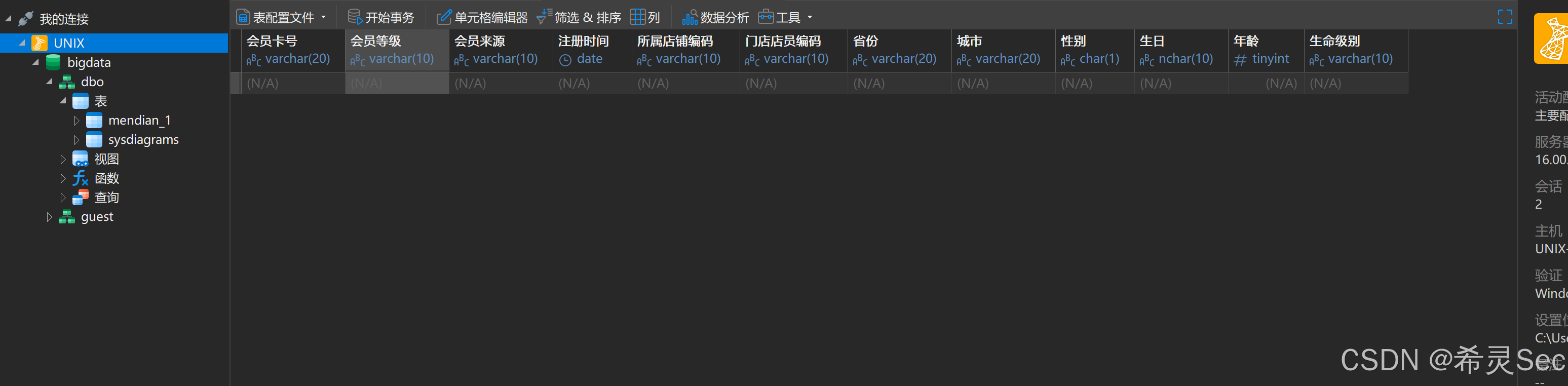 鼠标右键bigdata数据库中的表目录,:新建-表