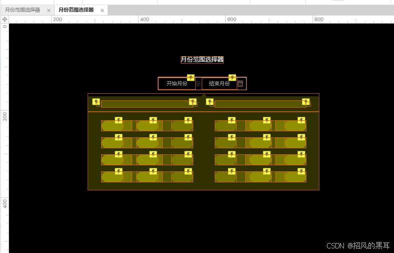 Axure月份范围选择器是一个月份范围下拉筛选元件,支持月份范围定义选择。组件自动加载系统当前年月份作为默认值,用户可通过箭头图标或键盘快捷键快速切换年份月份,其样式支持高度定制,包括颜色主题、字体尺寸及交互反馈,可无缝嵌入表单、弹窗或侧边栏等场景。