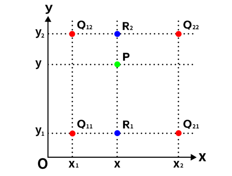 (x, y)的像素点,通常记作P00(x0, y0),P01(x0, y1),P10(x1, y0),P11(x1, y1),它们构成一个2x2的邻域矩阵。 -
